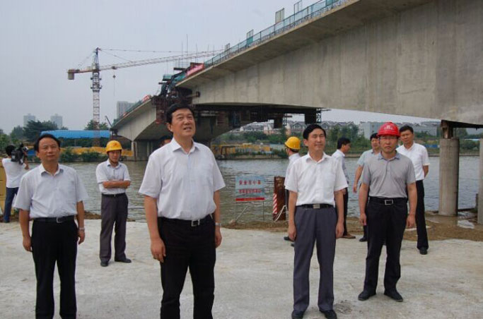 8月14日下午,淮安市委书记姚晓东在副市长王兴尧、市交通运输局长徐效文、开通公司董事长刘国承陪同下,赴市区城建交通重大项目之一的承德路大桥视察。听取市局工程建设进展情况汇报。董事长刘国承介绍了开通公司近年来承建淮安大交通建设情况。并就推进淮安交通重大工程建设垫付巨额工程资金情况进行汇报。